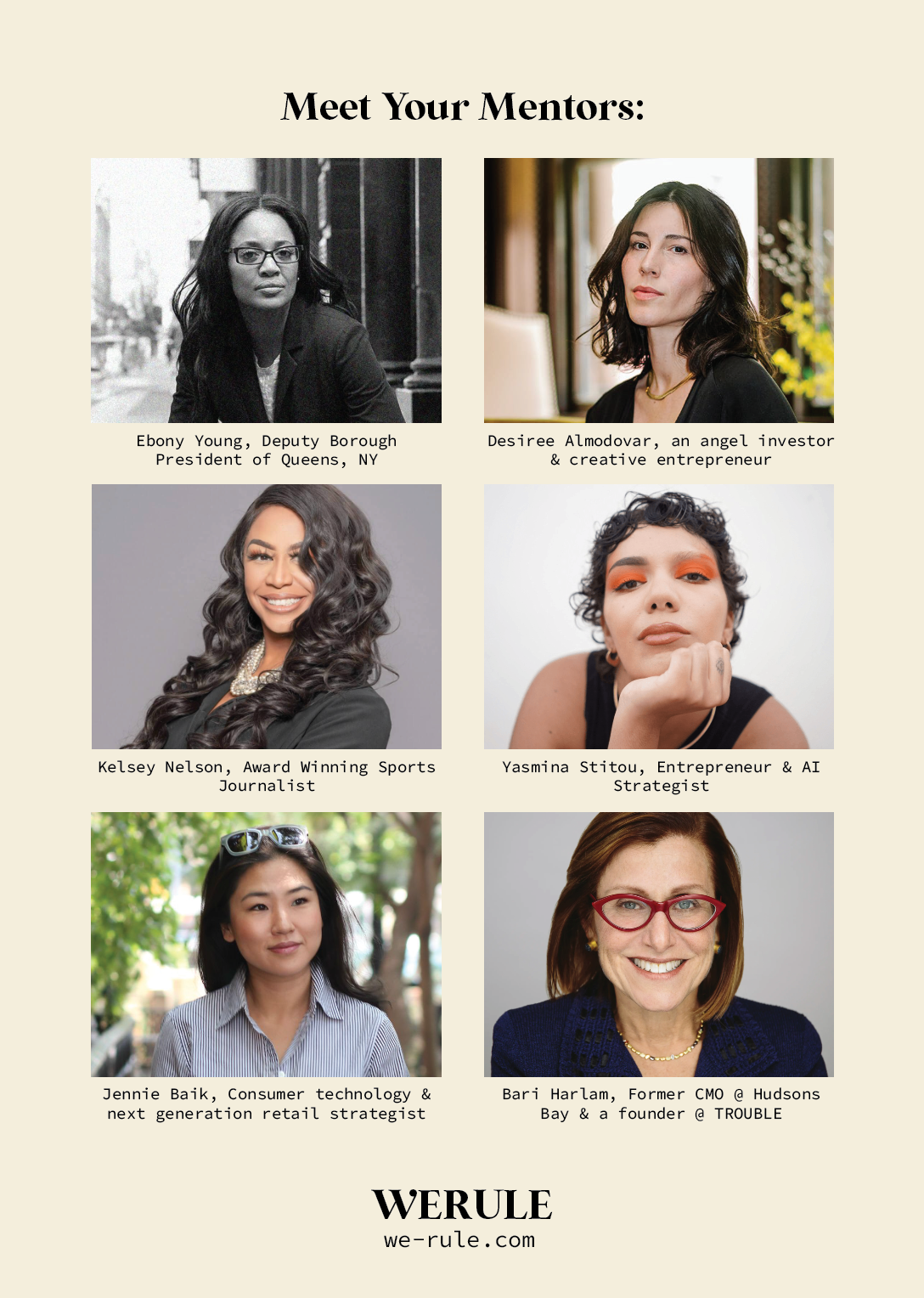 You can also schedule a quick 15-minute call with WERULE at info@we-rule.com to learn more about the process and find the best mentor match for you.